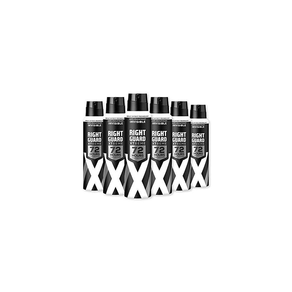Right Guard Mens Deodorant, Xtreme Invisible 72H High-Performance Anti-Perspirant Spray, Multipack 6 x 150 ml