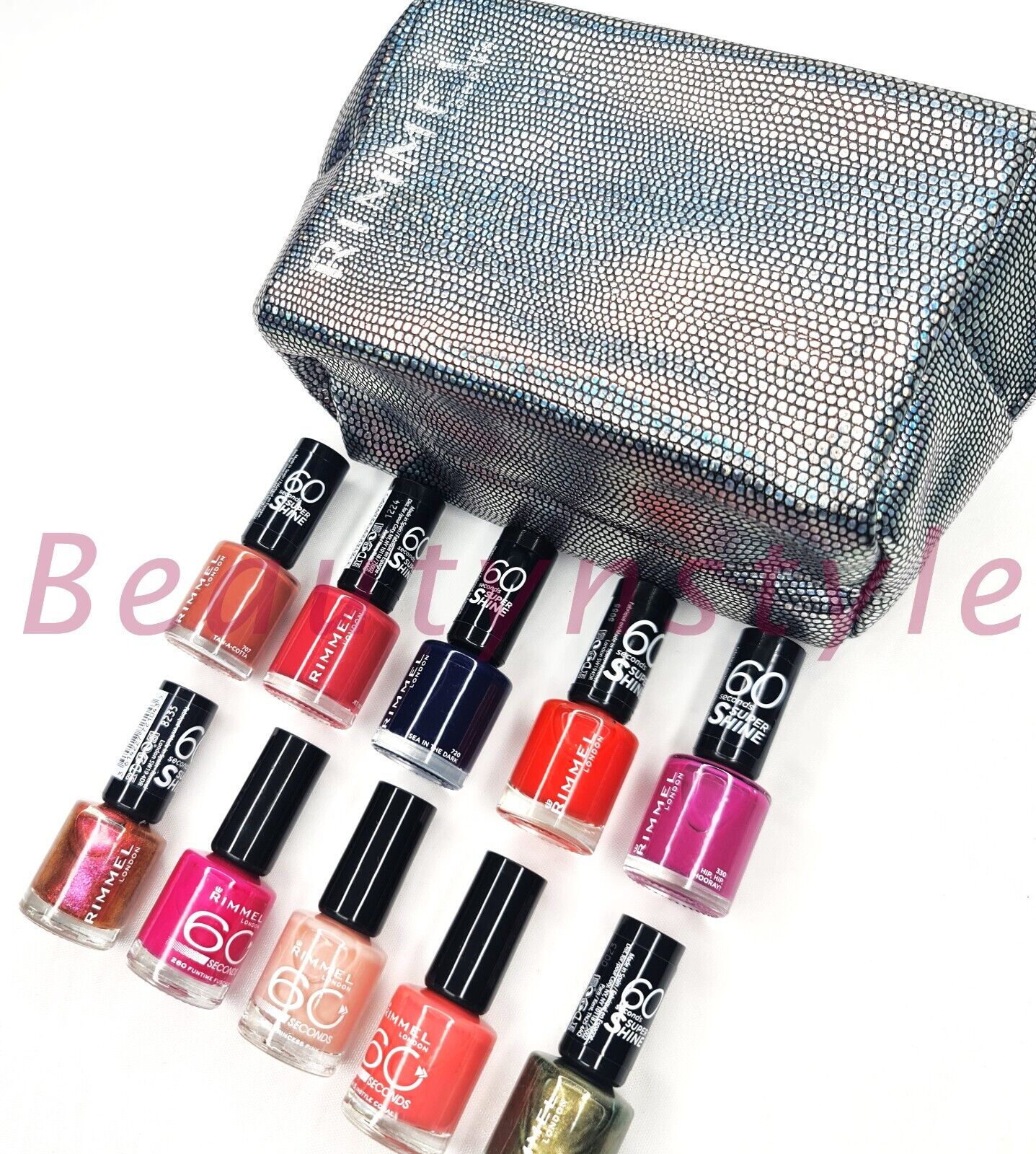 Rimmel London 60 Second Nail Polish Assorted Set of 8 With FREE RIMMEL BAG Gift