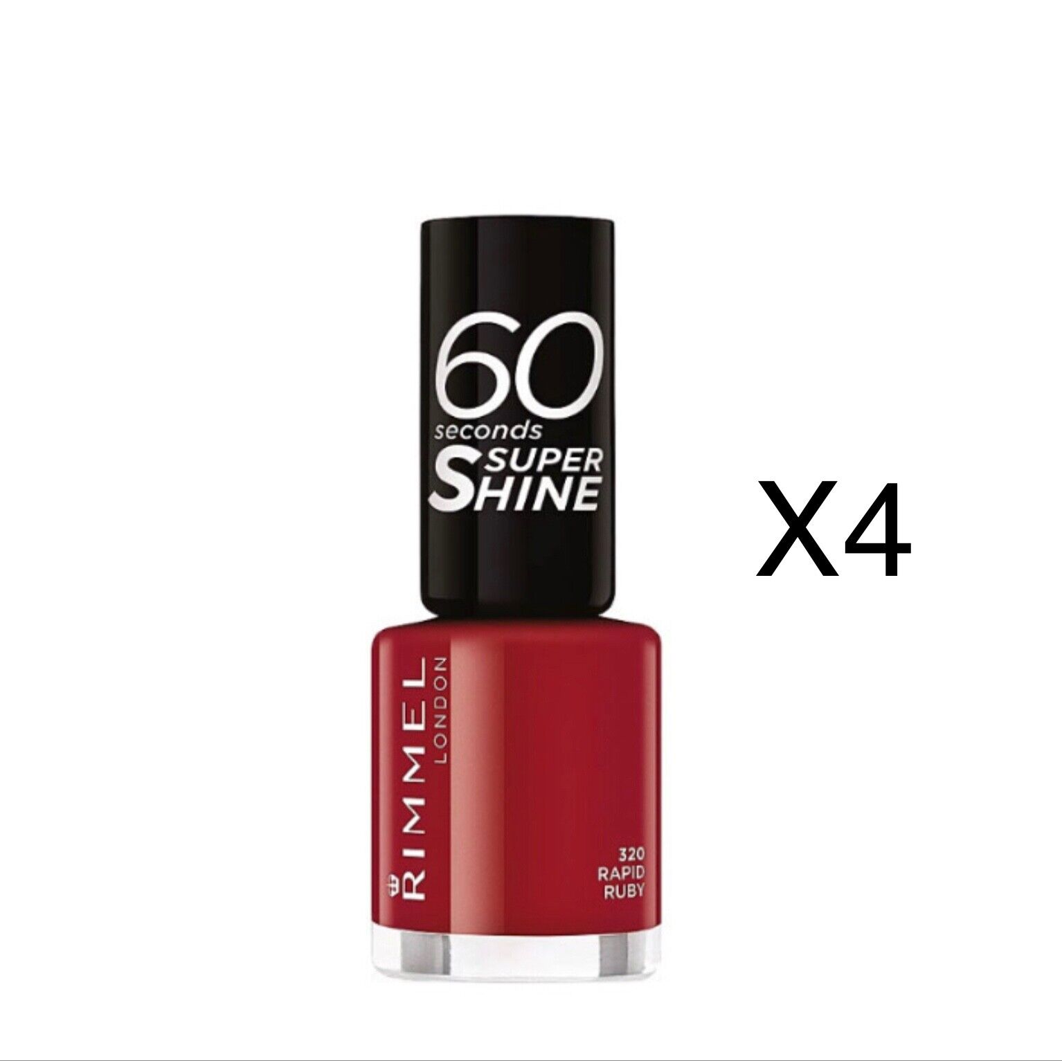 4x RIMMEL 60 Seconds Nail Polish Varnish 8ml Super Shine 320 RAPID RUBY