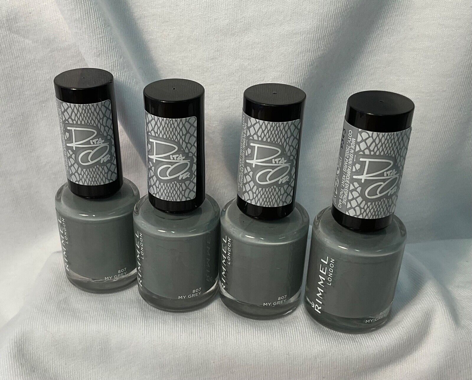 4x RIMMEL RITA ORA 60 Seconds Super Shine Nail Polish Varnish 8ml 807 MY GREY