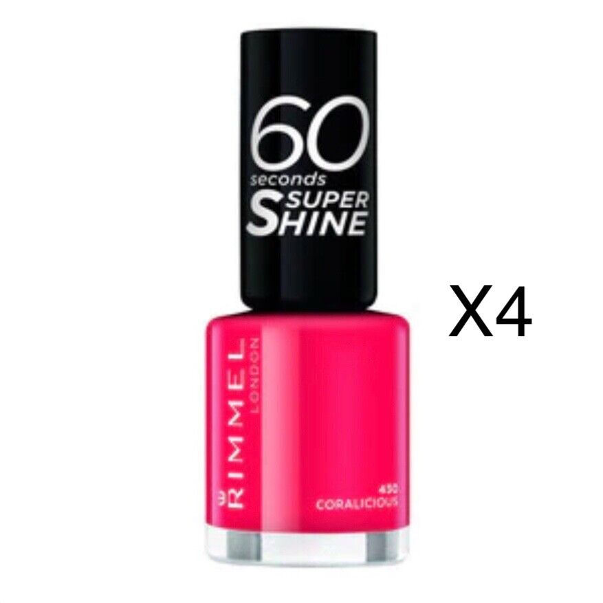4x RIMMEL 60 Seconds Nail Polish Varnish 8ml Super Shine 430 CORALICIOUS