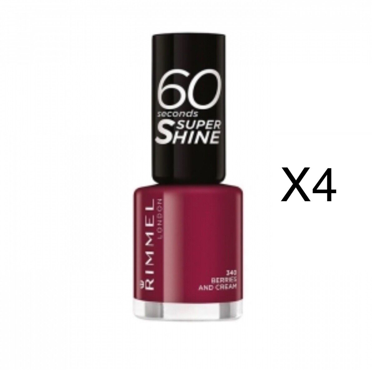 4x RIMMEL 60 Seconds Nail Polish Varnish 8ml Super Shine 340 BERRIES AND CREAM