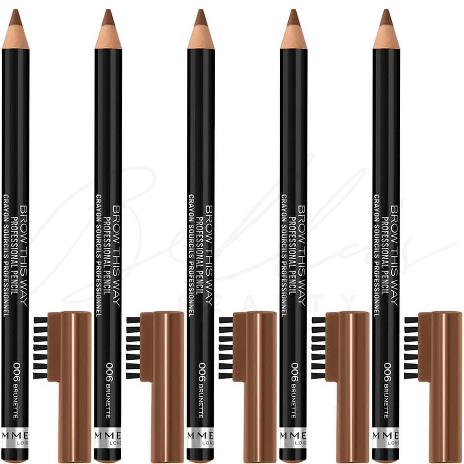 RIMMEL Brow This Way Professional Color Brow Pencil - 006 Brunette *PACK OF 5*