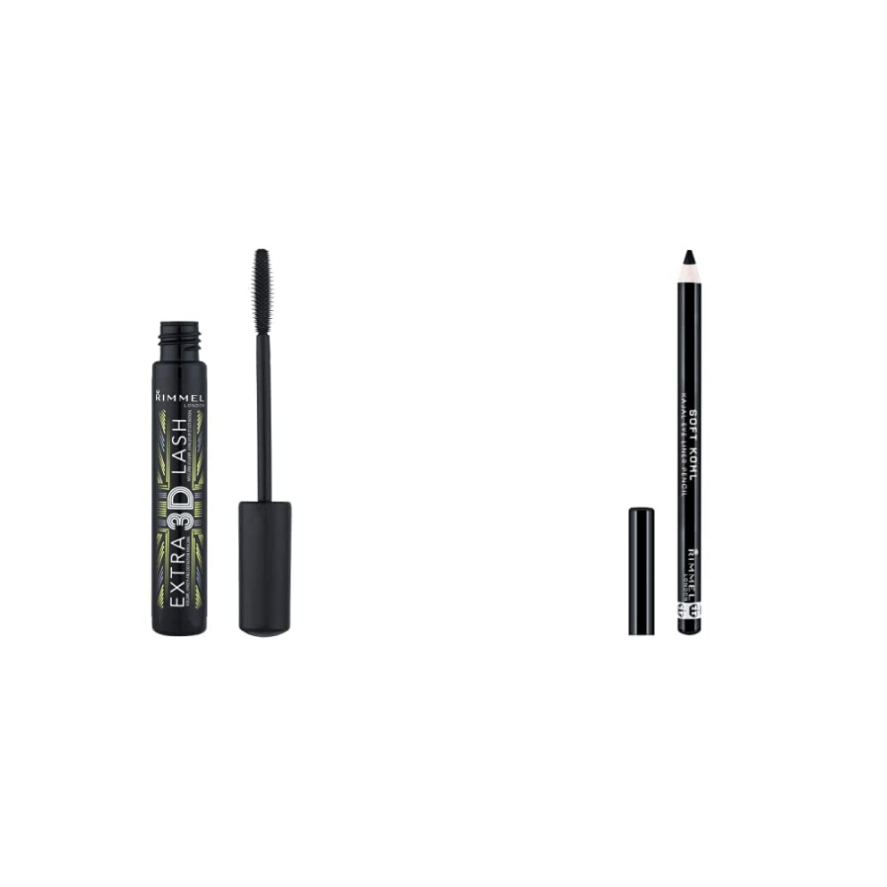 Rimmel Extra 3D Lash Volumising Mascara, 8ml & London Soft Kohl Smudge-proof Eyeliner Pencil, Jet black