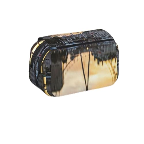 NBHDZENGW London Eye Flip Top Double Layer Pencil Case-Large Capacity Premium Polyester Fabric,Full Print Design-Ideal for School,Travel