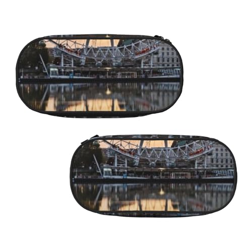 WXWJSHMGC London Eye Print Large Capacity Double Layer Pencil Case with Zipper – Durable Fabric School Pouch for Pens,– Ideal for Students