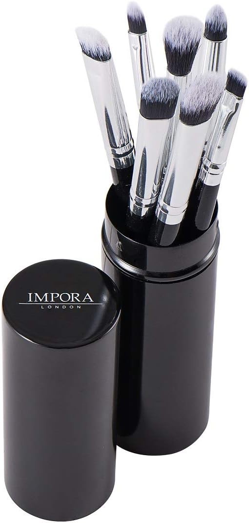 Eye Makeup Brush Set by Impora London. Includes - Eyeshadow, Blending, Pencil & Eyeliner Brushes [7 + Metal Case]. Perfect for Travel