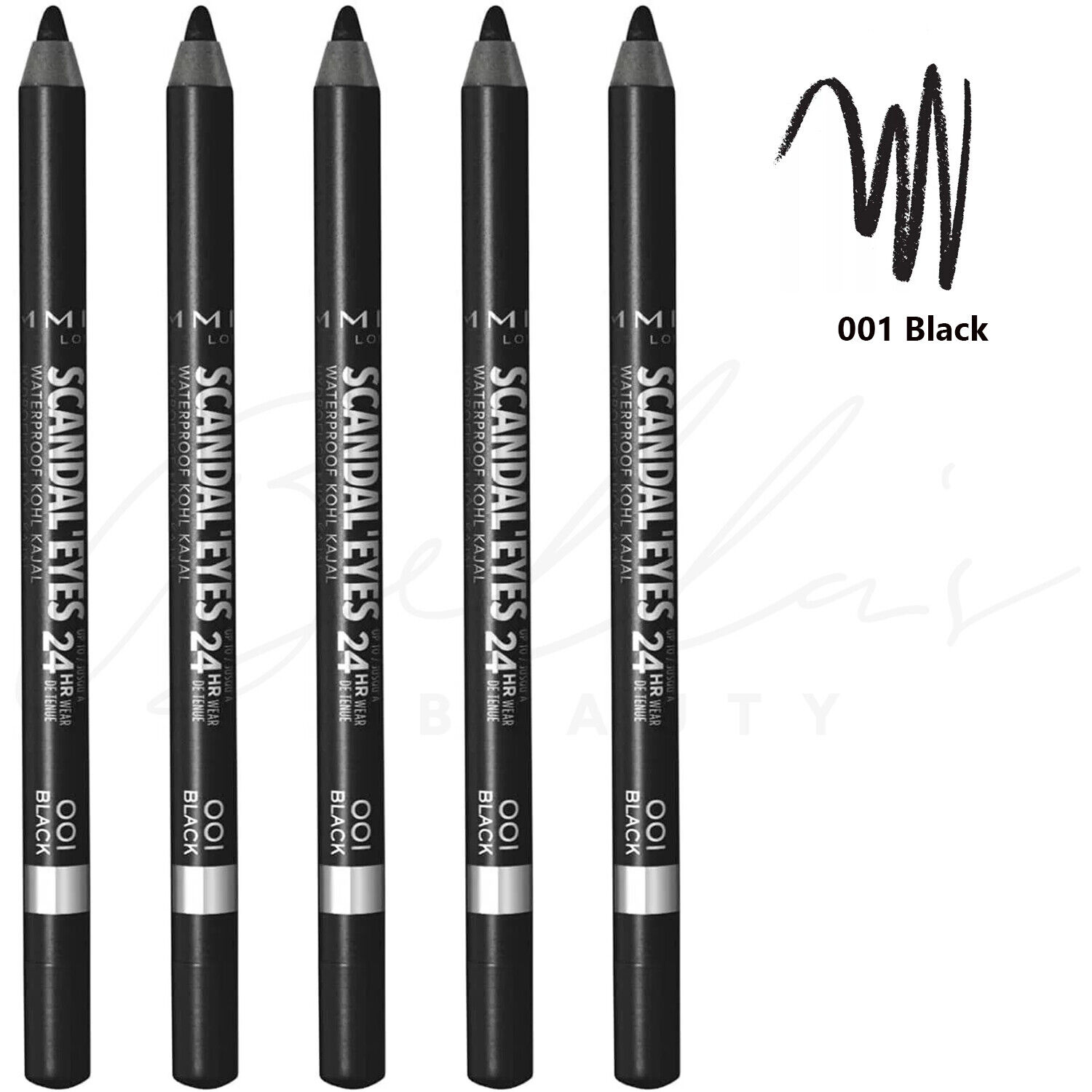 RIMMEL Scandaleyes Waterproof Kohl Kajal Eyeliner Pencil - 001 Black *PACK OF 5*