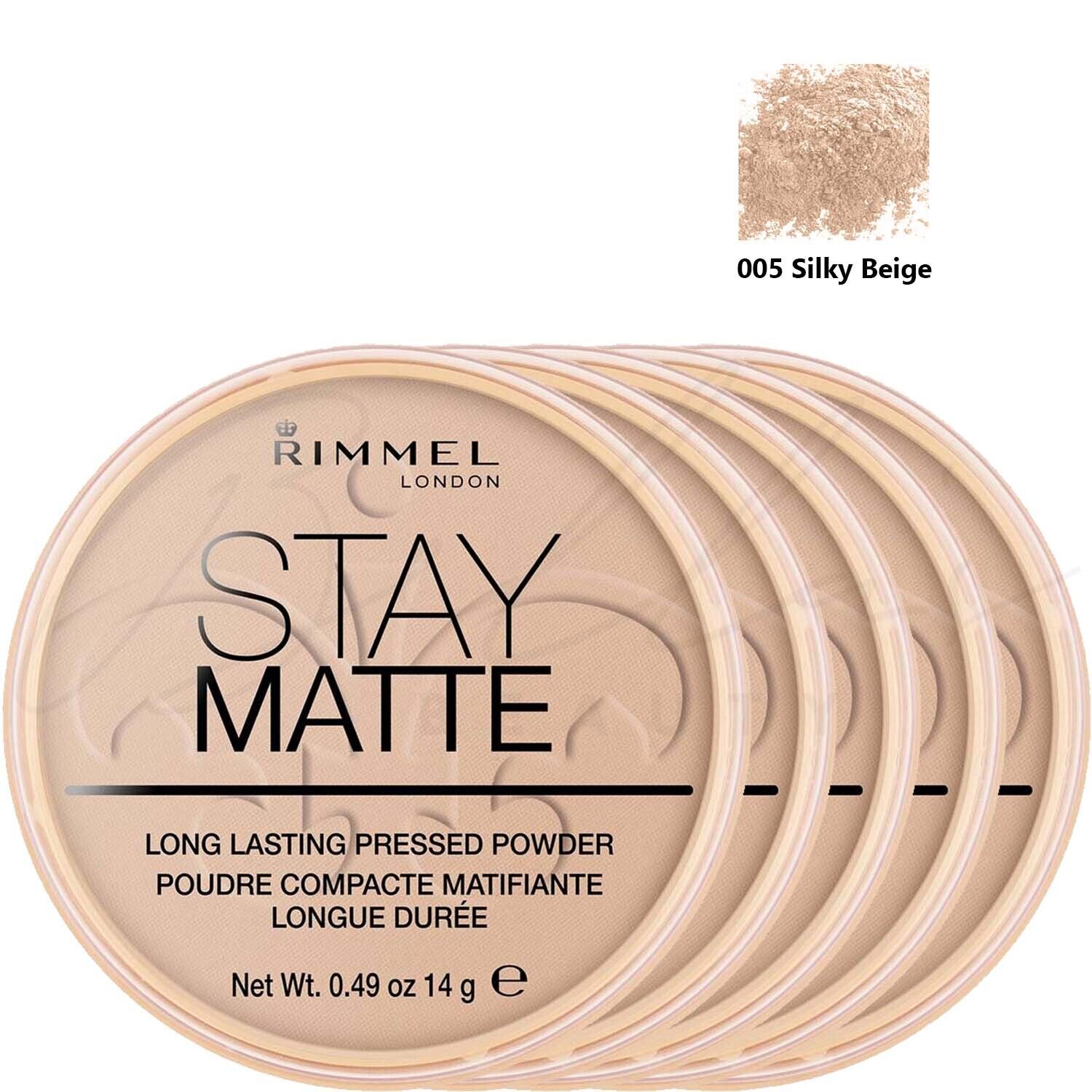 RIMMEL London Stay Matte Pressed Face Powder 14g - 005 Silky Beige *PACK OF 5*