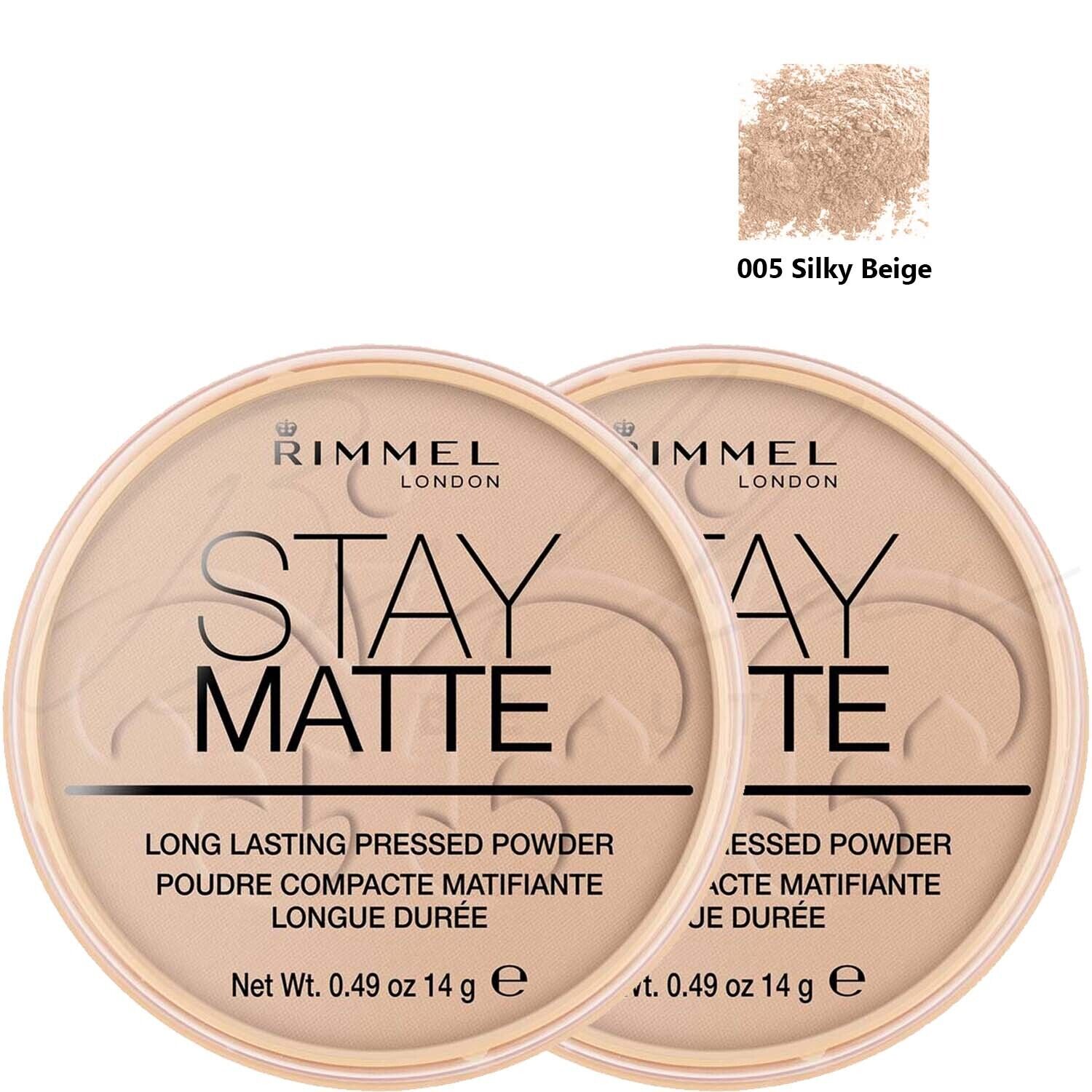 RIMMEL London Stay Matte Pressed Face Powder 14g - 005 Silky Beige *PACK OF 2*