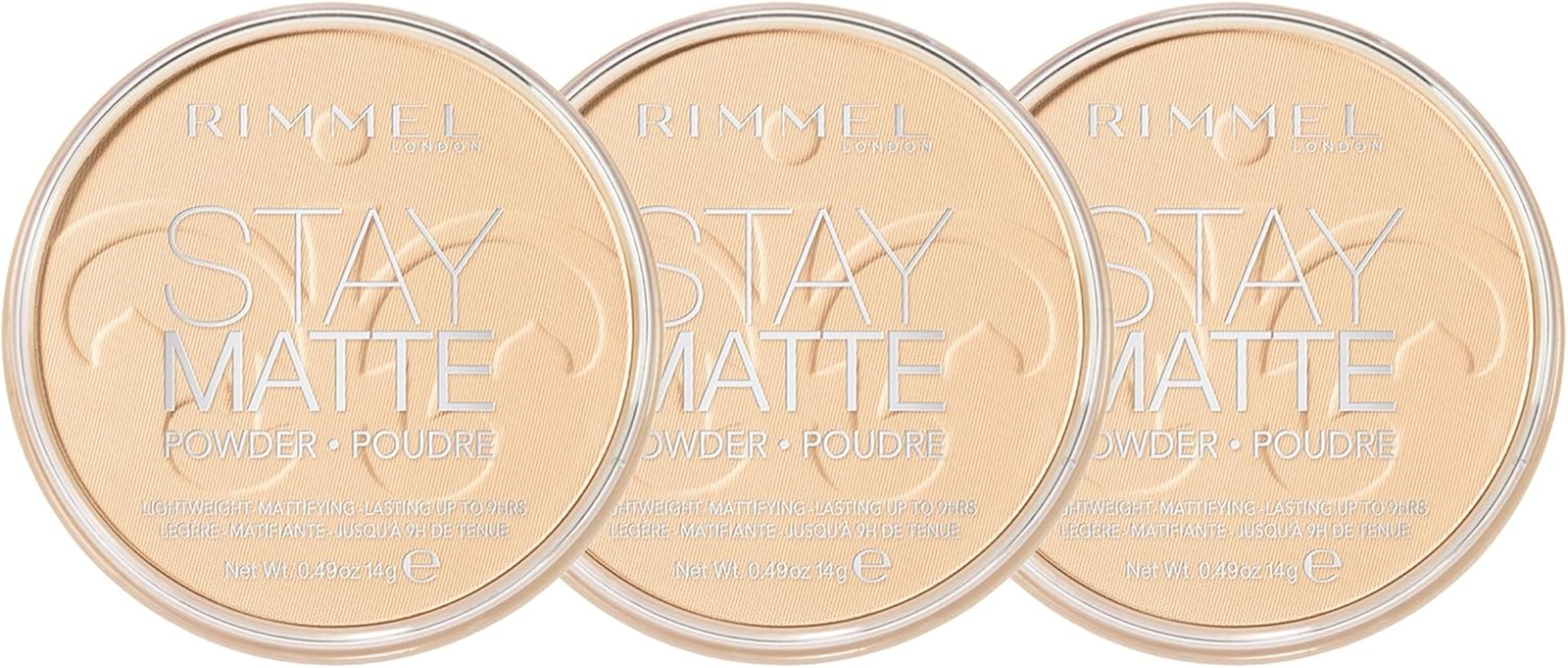 Rimmel Stay Matte Pressed Powder Transparent 3-Pack, Long-Lasting Makeup, Natura
