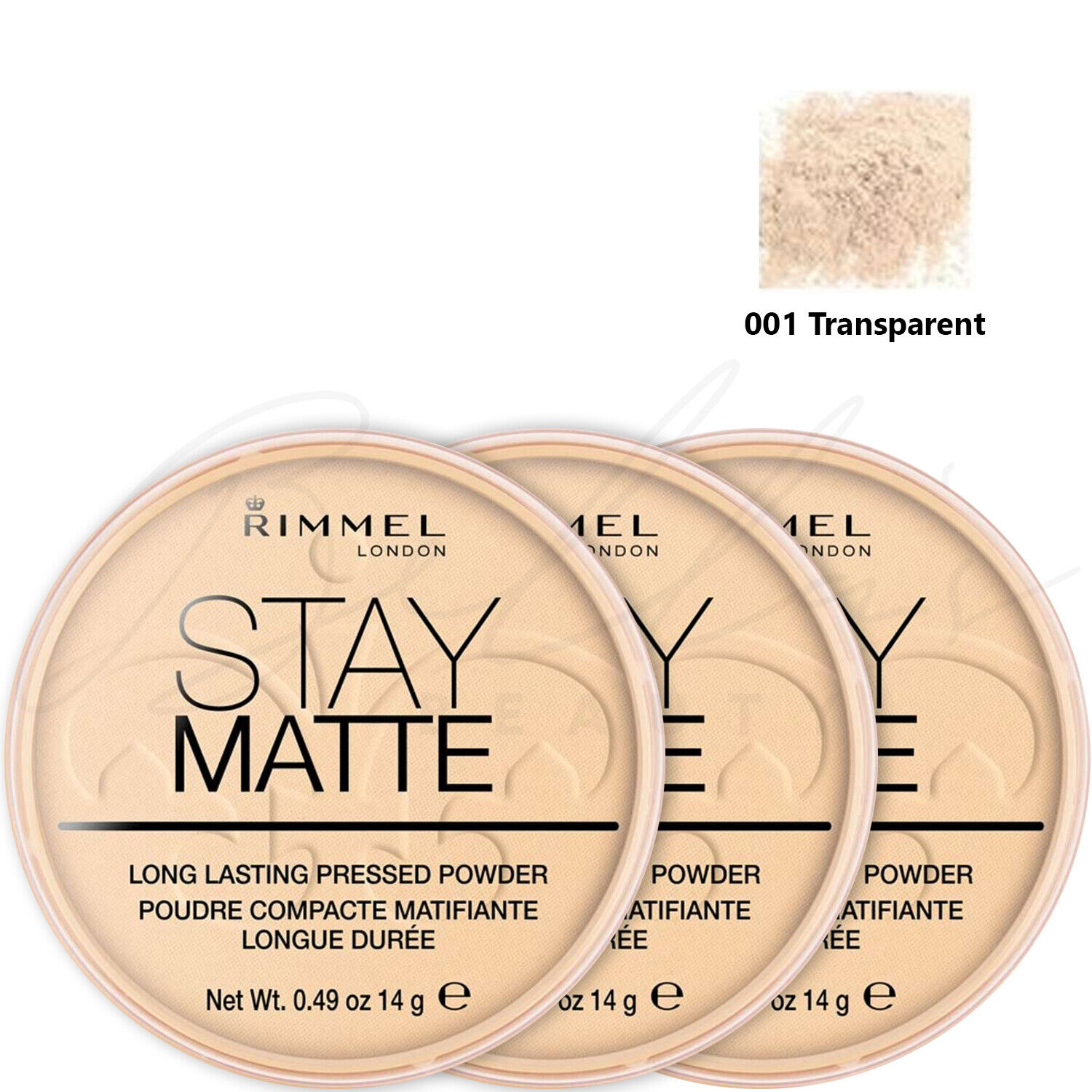 RIMMEL London Stay Matte Pressed Face Powder 14g - 001 Transparent *PACK OF 3*