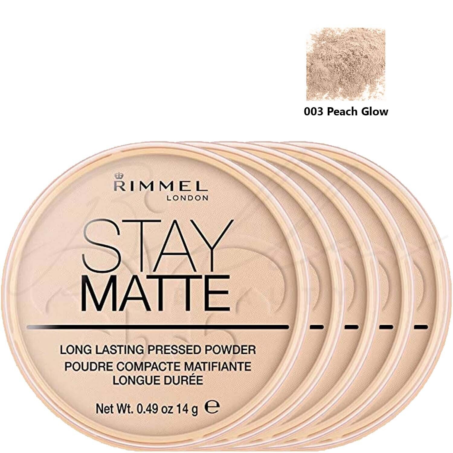 RIMMEL London Stay Matte Pressed Face Powder 14g - 003 Peach Glow *PACK OF 5*