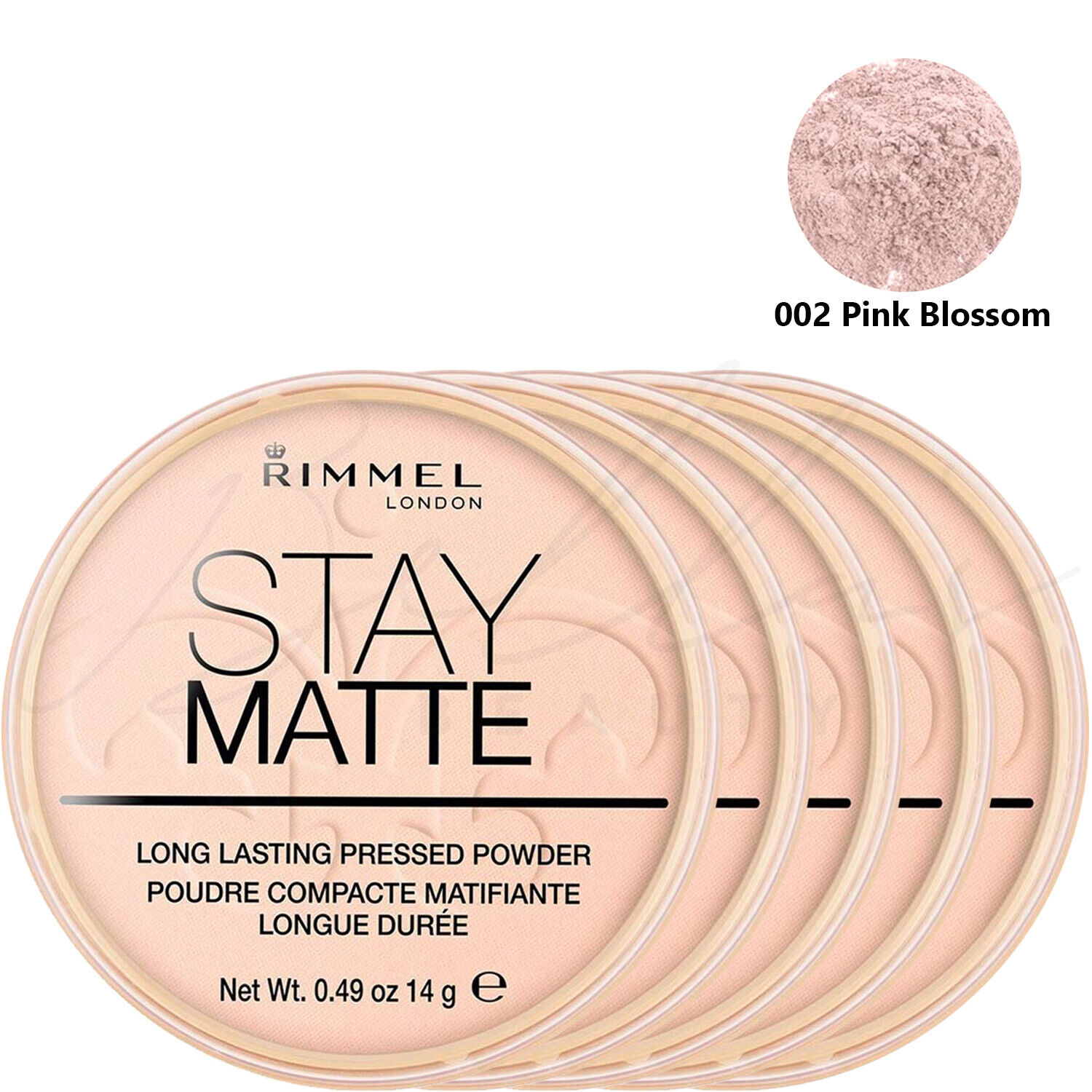 RIMMEL London Stay Matte Pressed Face Powder 14g - 002 Pink Blossom *PACK OF 5*