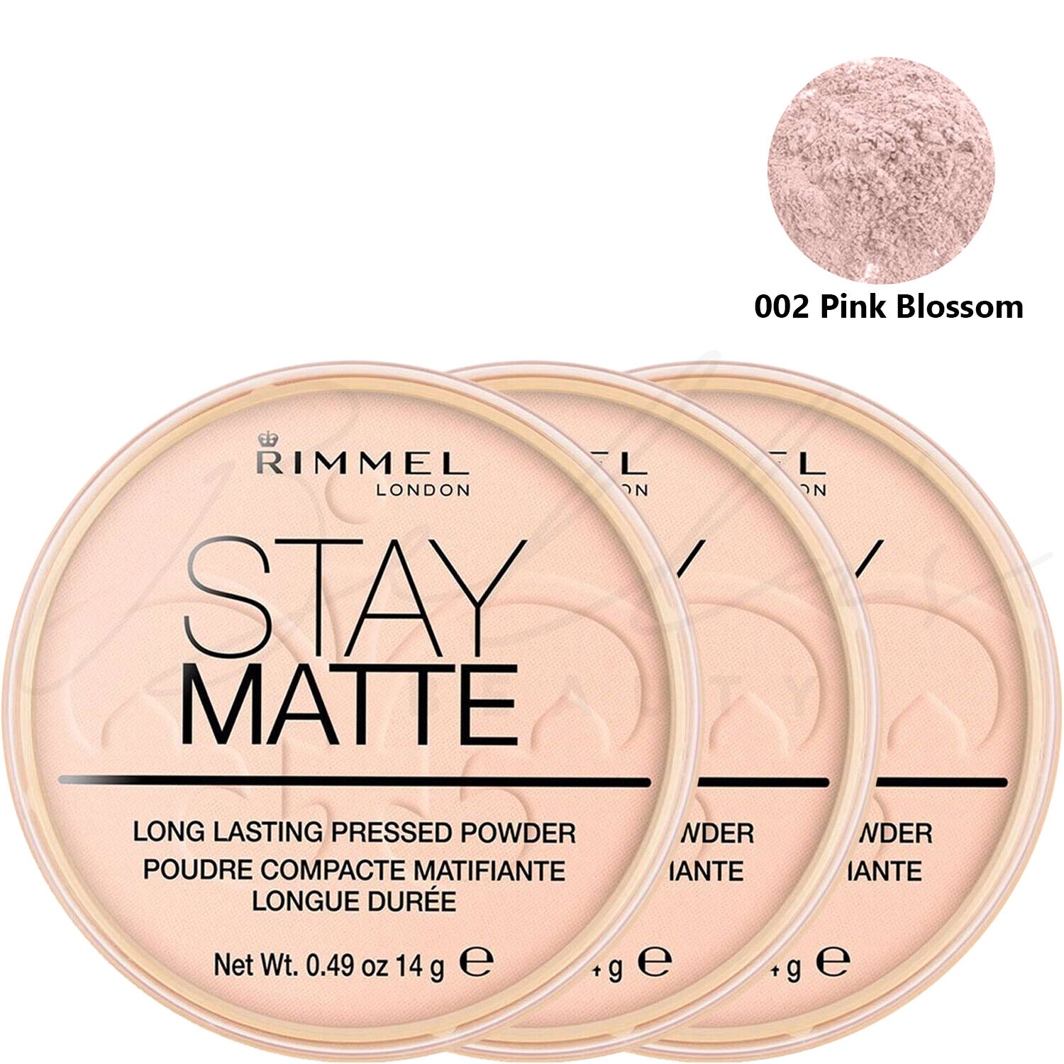 RIMMEL London Stay Matte Pressed Face Powder 14g - 002 Pink Blossom *PACK OF 3*