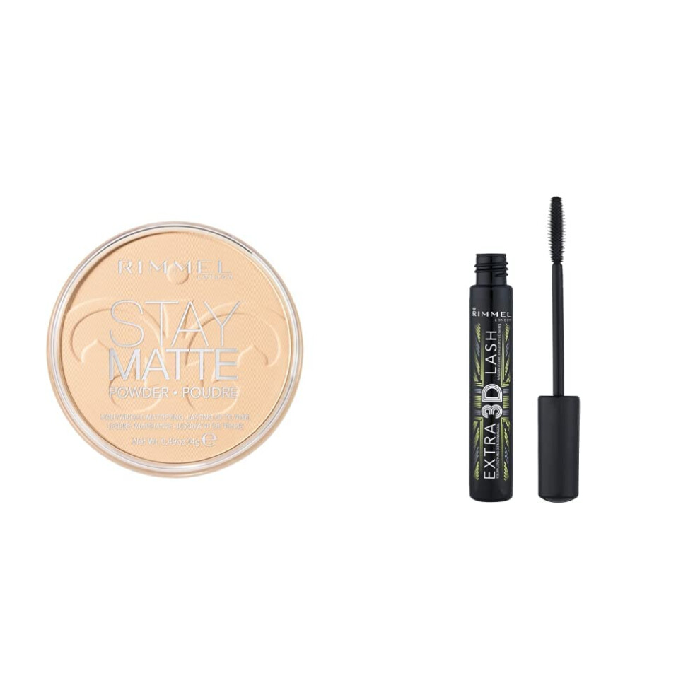 Rimmel 2PC Set, Stay Matte Pressed Powder, 14 g, Rimmel Extra 3D Lash Volumising Mascara, 8ml