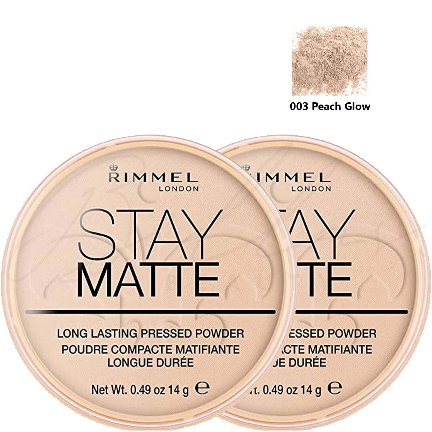 RIMMEL London Stay Matte Pressed Face Powder 14g - 003 Peach Glow *PACK OF 2*