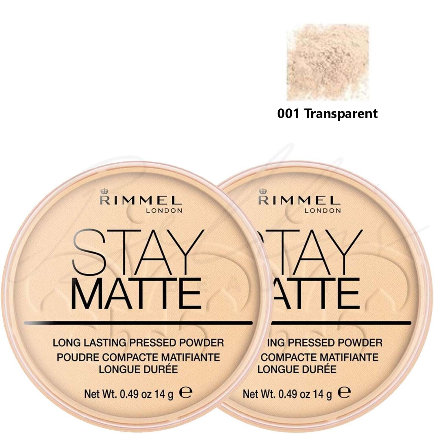 RIMMEL London Stay Matte Pressed Face Powder 14g - 001 Transparent *PACK OF 2*