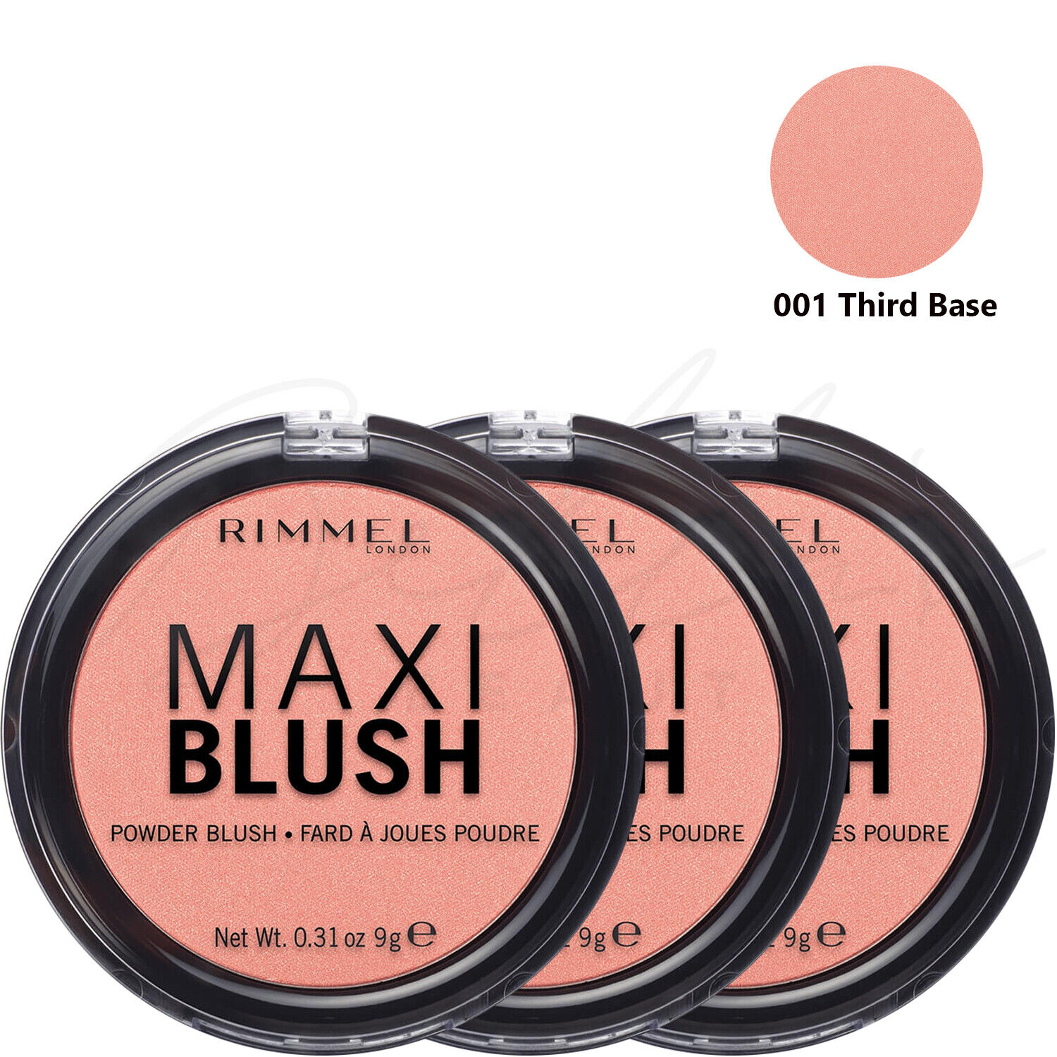 RIMMEL Maxi Blush Face Compact Pressed Powder 9g - 001 Third Base *PACK OF 3*
