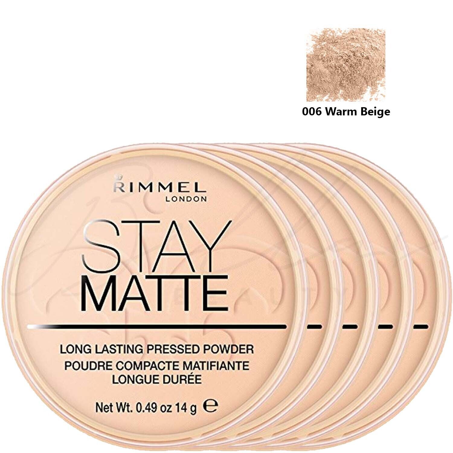 RIMMEL London Stay Matte Pressed Face Powder 14g - 006 Warm Beige *PACK OF 5*