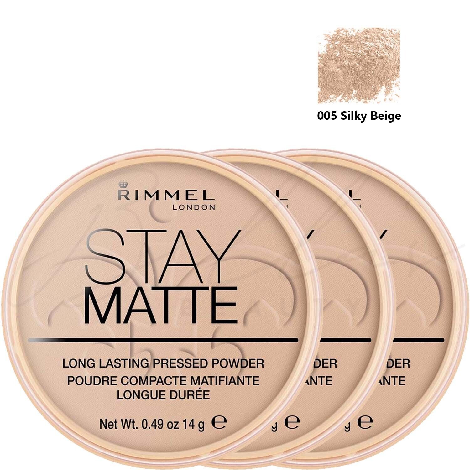 RIMMEL London Stay Matte Pressed Face Powder 14g - 005 Silky Beige *PACK OF 3*