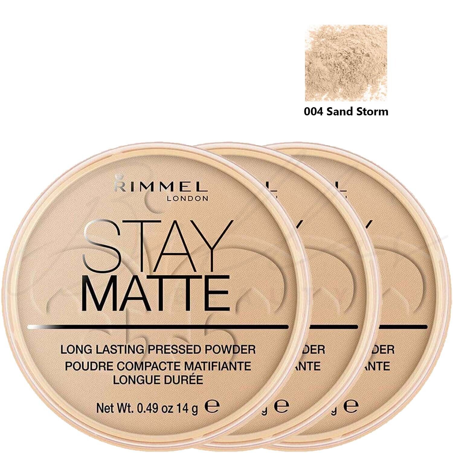 RIMMEL London Stay Matte Pressed Face Powder 14g - 004 Sandstorm *PACK OF 3*