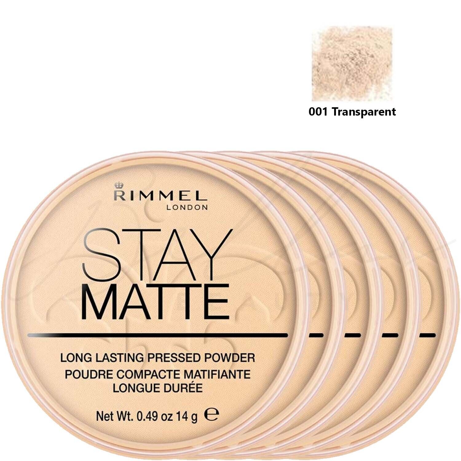 RIMMEL London Stay Matte Pressed Face Powder 14g - 001 Transparent *PACK OF 5*