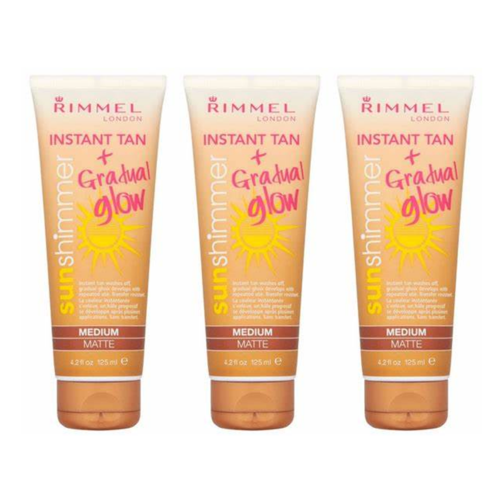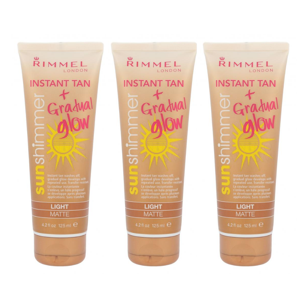 Rimmel Instant Tan Sun Shimmer Instant Tan & Gradual Glow - Light Matte 125ml x3