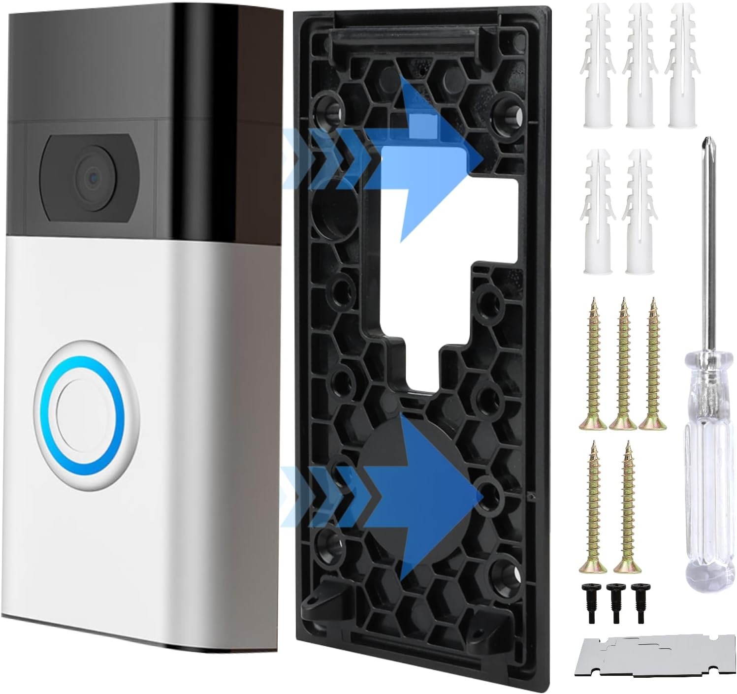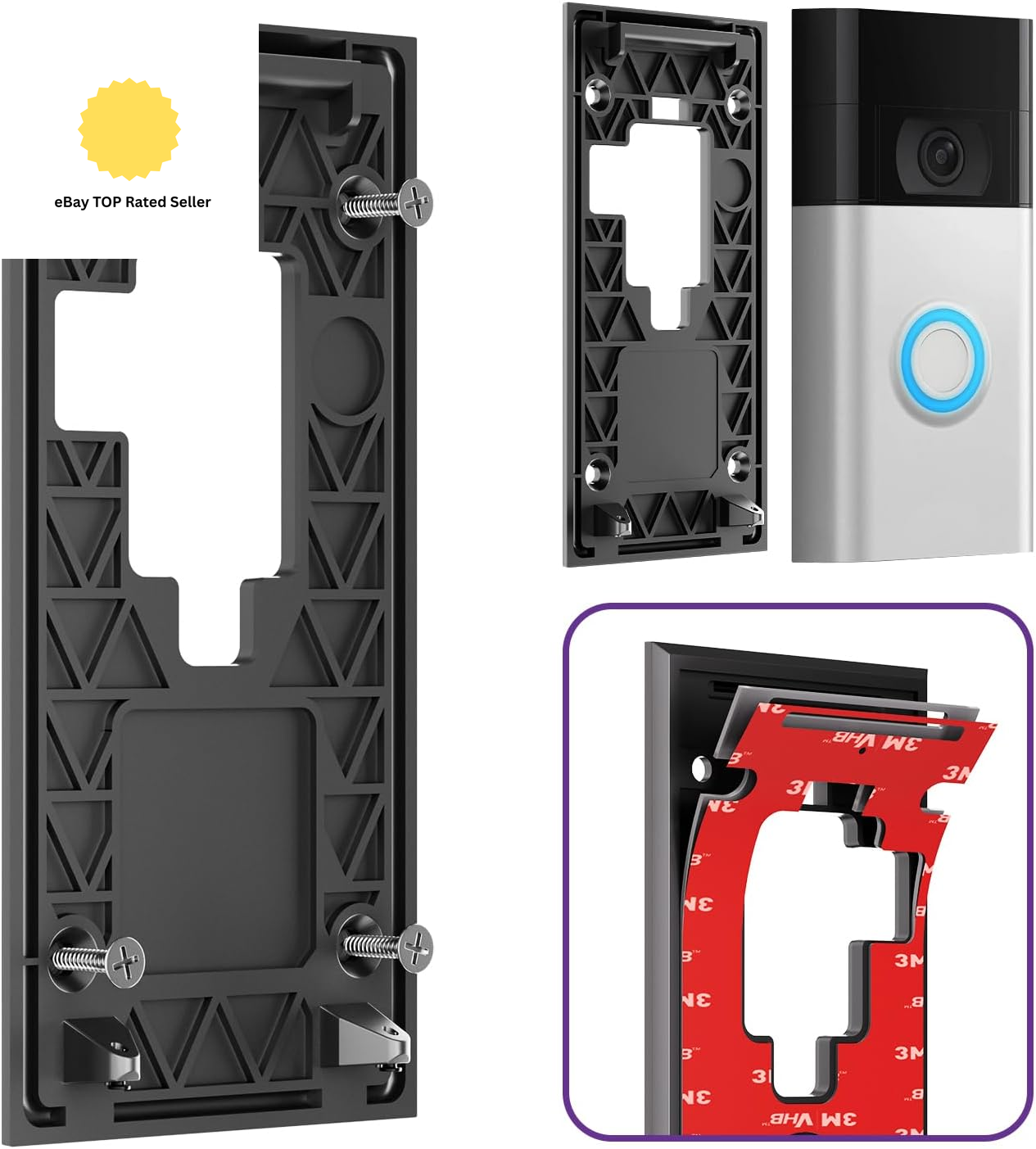 Ring No-Drill Mount with Sticky Pad Compatible with Ring Doorbell 3,Video Doorbell 3 Plus,Video Doorbell 4,Ring Doorbell 2nd Gen,Ring Battery Doorbel