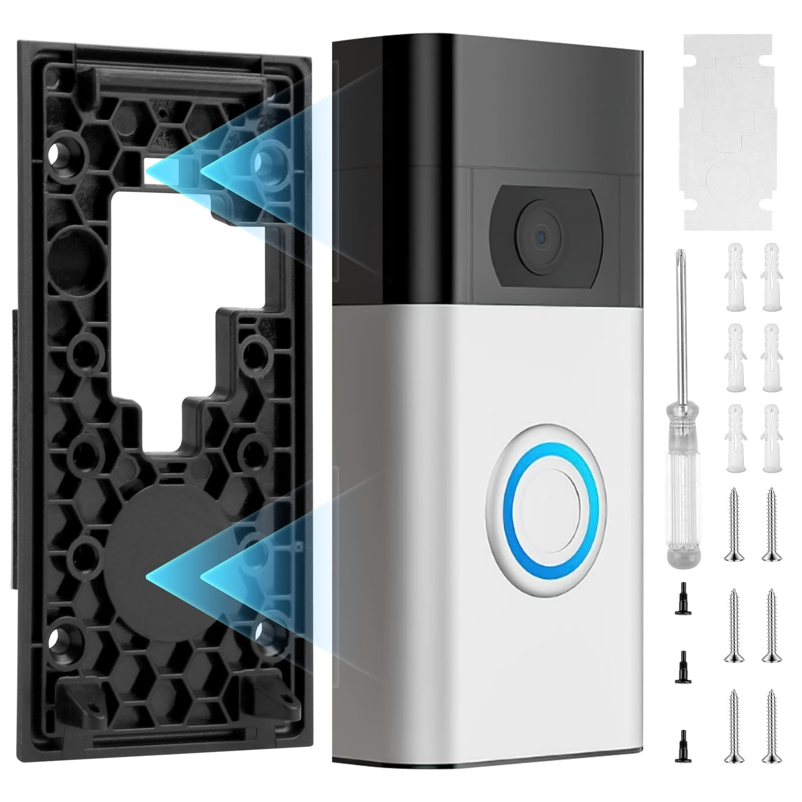 Ring No-Drill Mount with Sticky Pad Compatible with Ring Doorbell 3,Video Doorbell 3 Plus,Video Doorbell 4,Ring Doorbell 2nd Gen,Ring Battery