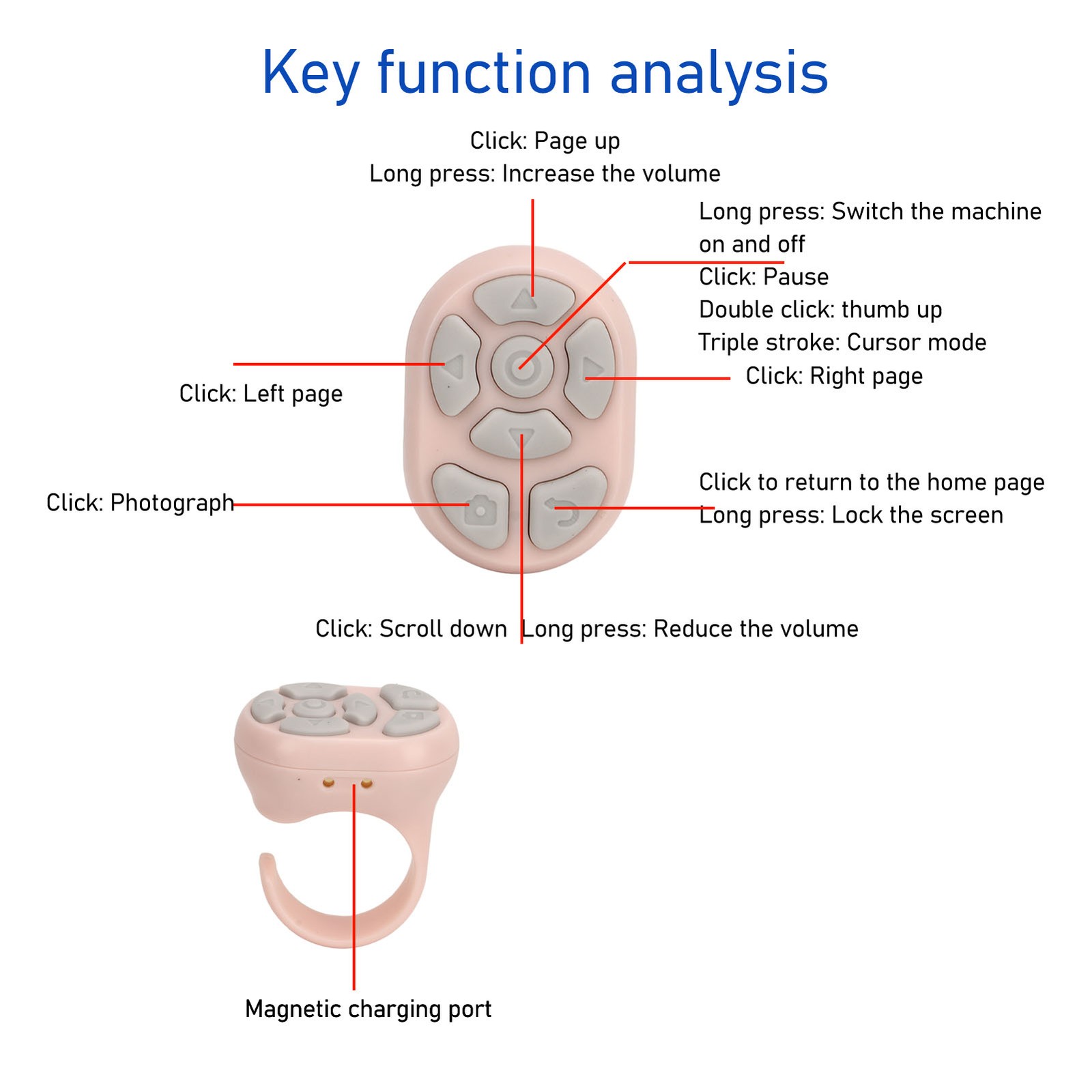 (Pink)Remote Control Scrolling Ring APP Page Turner Camera Remote T