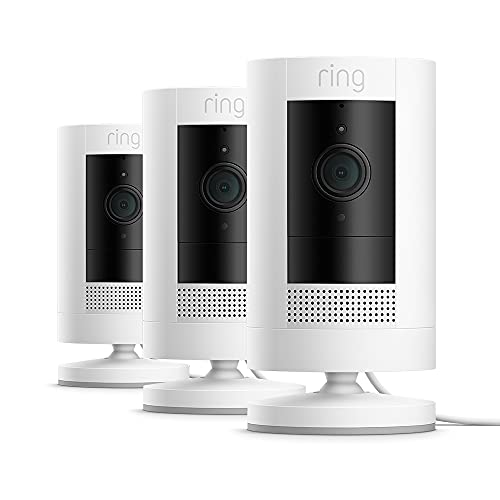 Ring Outdoor Camera Plug-In (Stick Up Cam) | HD outdoor Security Camera with Two-Way Talk, Wifi, Works with Alexa | alternative to CCTV system | 30-day free trial of Ring Home | 3 Cameras
