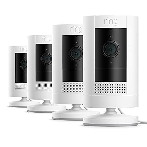 Ring Outdoor Camera Plug-In (Stick Up Cam) | HD outdoor Security Camera with Two-Way Talk, Wifi, Works with Alexa | alternative to CCTV system | 30-day free trial of Ring Home | 4 Cameras
