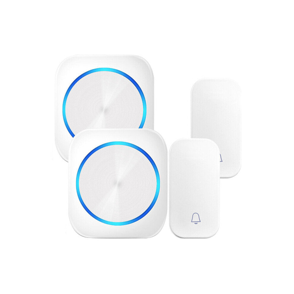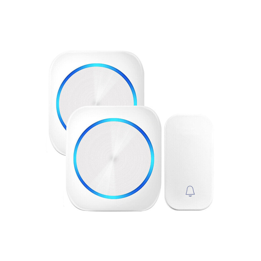 (2 to 2) Self-powered Wireless DoorBell Door Bell Ring Chime Call Night Light No Battery Waterproof 150M White