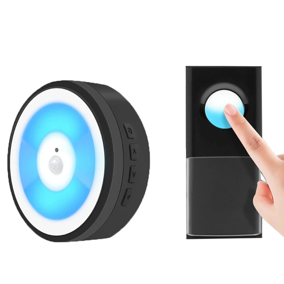 (Black, button+receiver) USB WIFI Smart Door Sensor Night Light IP55 Waterproof Wireless Doorbell with Ring Chime Call LED Smart Home Device
