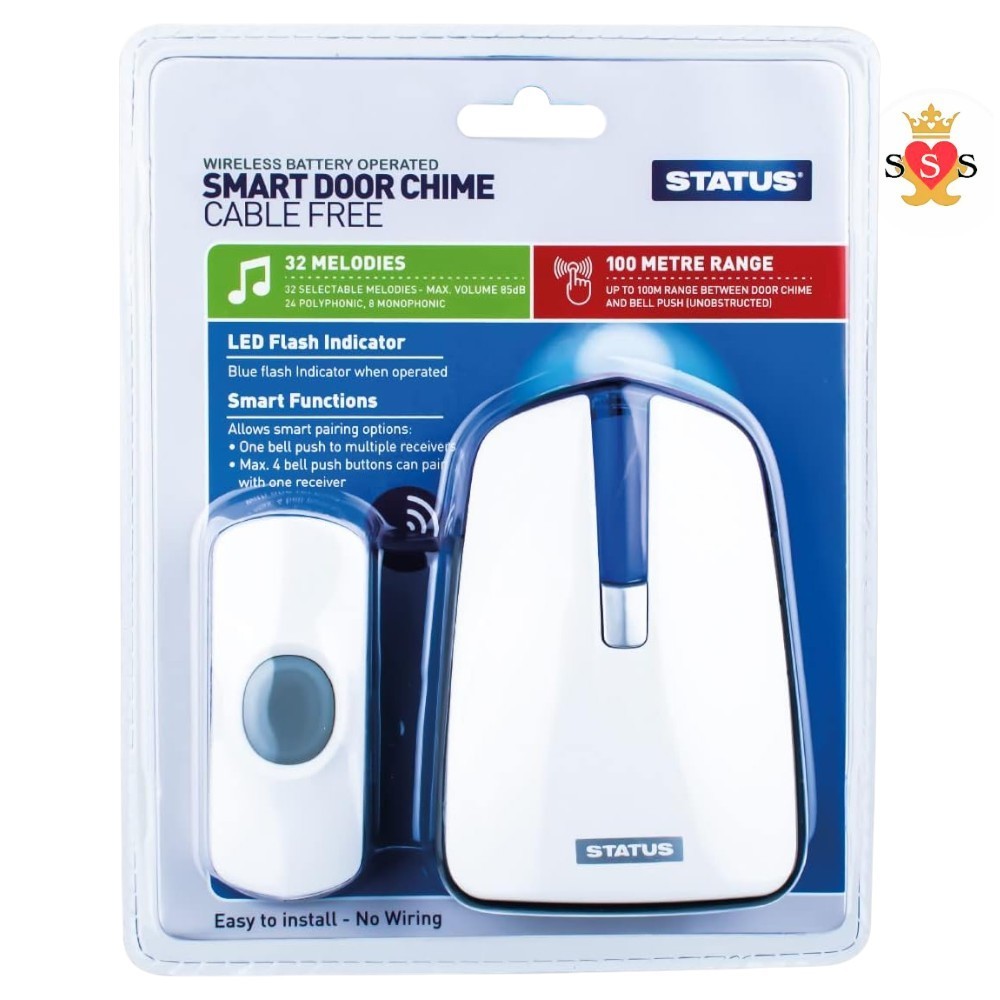 STATUS Wireless Door Bell White | Waterproof Ring Door Chime | 150 Meters Range with 32 Melodies | SDC5