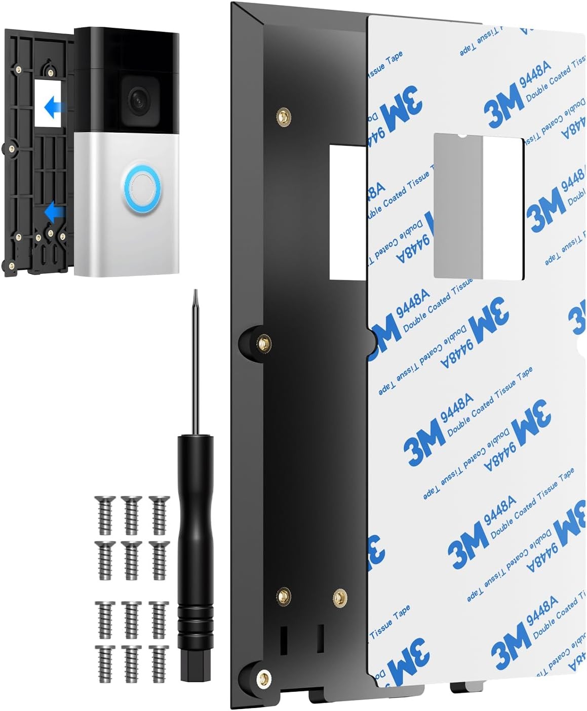 Ring No-Drill Mount with Sticky Pad Compatible with Ring Doorbell 3,Video Doorbell 3 Plus,Video Doorbell 4,Ring Doorbell 2nd Gen,Ring Battery Doorbel