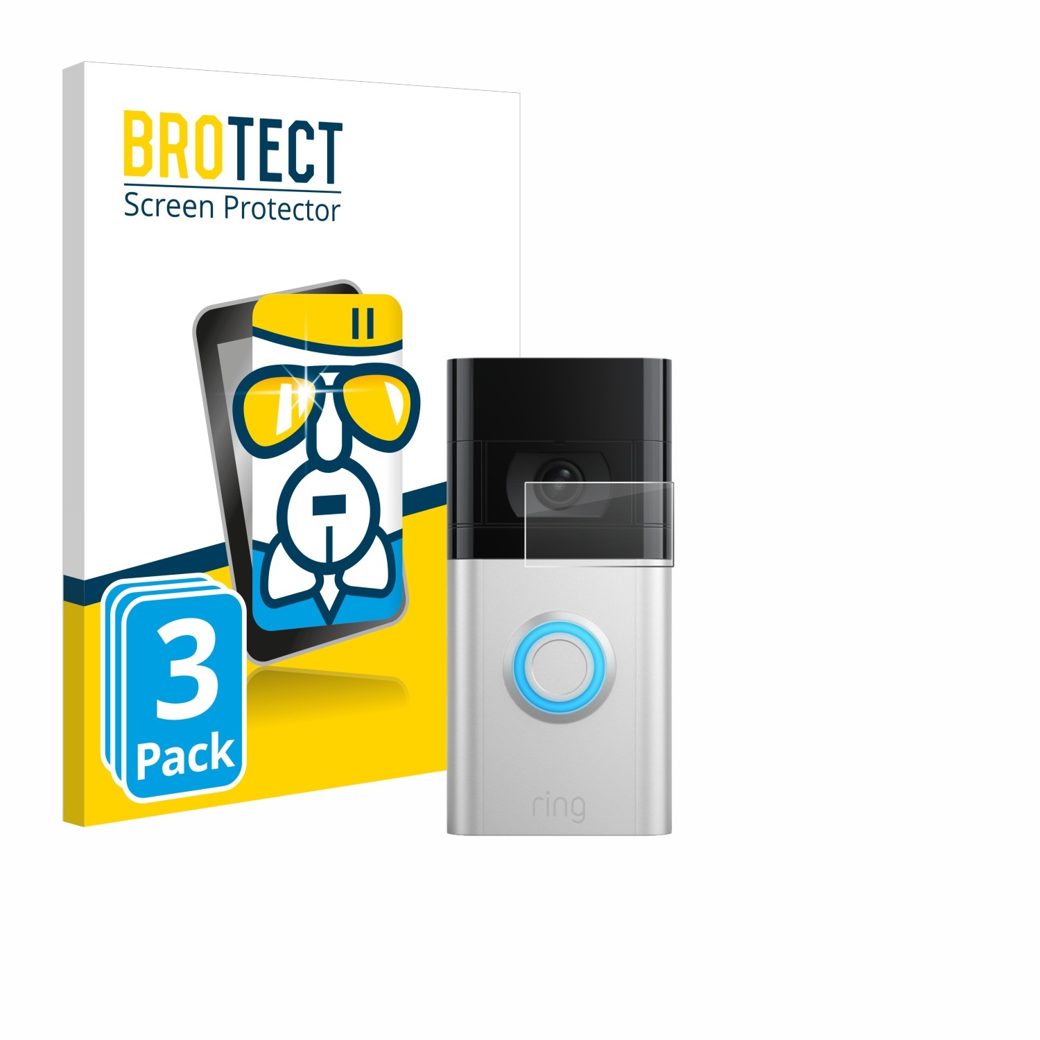 brotect Glass Screen Protector Film compatible with Ring Video Doorbell 3 Plus (3 Pack) - Glass-Foil 9H Protection [Scratch Resistant, High Clarity]