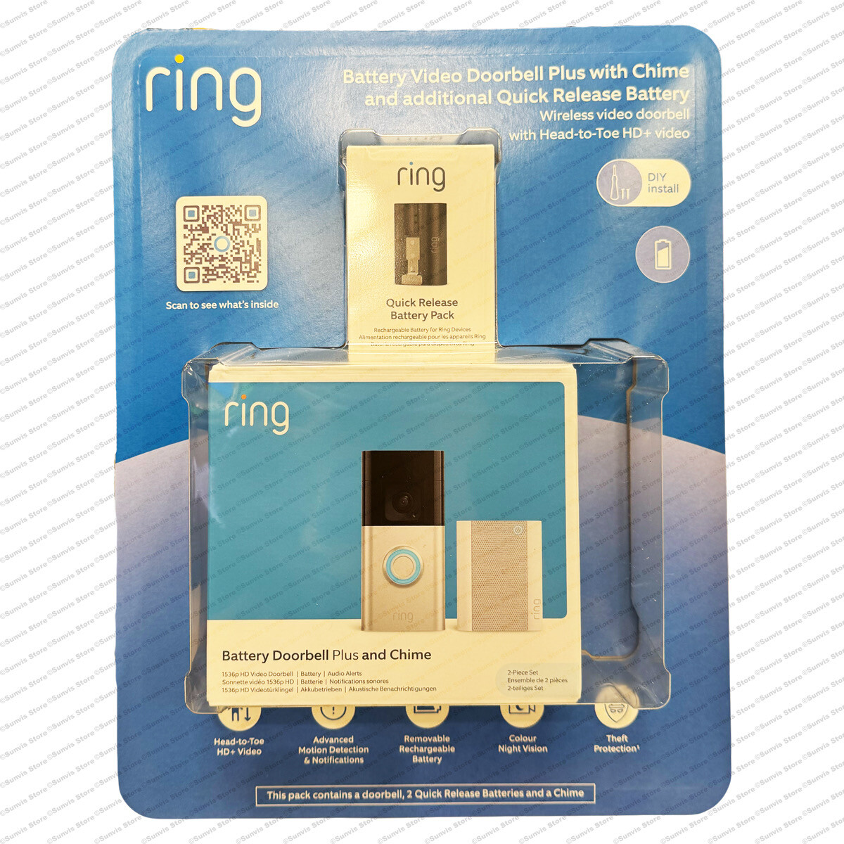 Ring Battery Video Doorbell Plus + Chime + Extra Battery | 1536p HD Wi-Fi