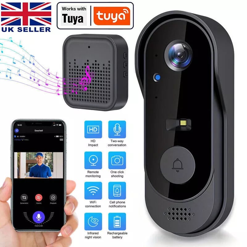 Wireless Video Doorbell Camera WiFi Smart Door Ring HD Intercom Bell Security UK