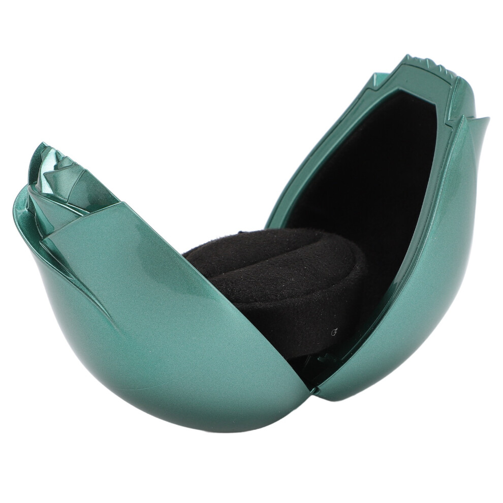 Proposal Ring Box in Rose Shape with Green Finish and Plush Flocking Interior