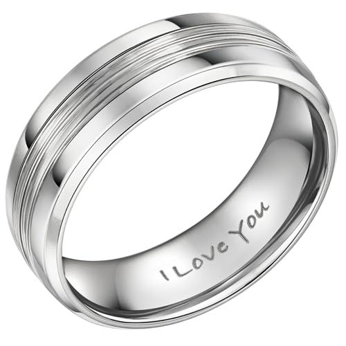 Willis Judd 7mm Titanium Ring for Men Engraved I Love You In Wooden Gift Box Wedding Band Ring Mens Engagement Ring Groove Promise Ring Comfort Fit Size X