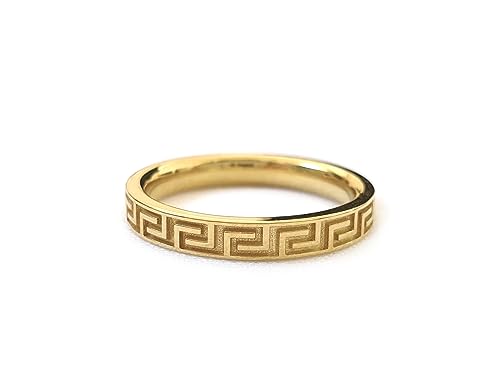 Elegant jewel box DUTY-FREE Unisex Greek Key Ring in Solid Gold 9k,14k, & 18k, Gold Meander Band 3MM Unique gift, All Sizes