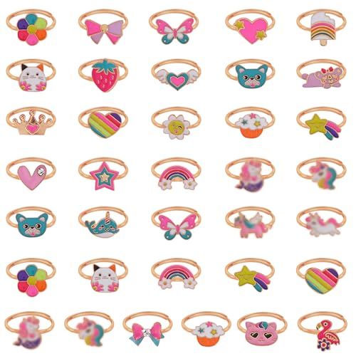 EDLMKM 36PCS Girls Rings, Little Girl Jewel Ring in Box, Adjustable Girls Ring
