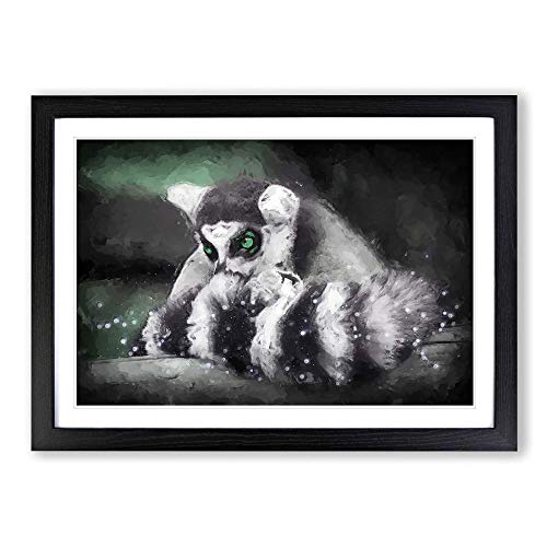 Big Box Art Ring-Tailed Lemur in Abstract Framed Wall Art Picture Print Ready to Hang, Black A2 (62 x 45 cm)