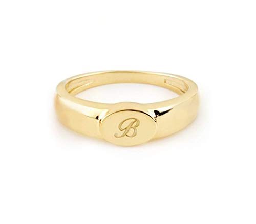 Elegant jewel box DUTY-FREE Women Oval Initial signet ring in solid Gold 9k, 14k, & 18k, Custom engraved signet ring, Gold Personalized chevalier ring, Birthday gift, RN363