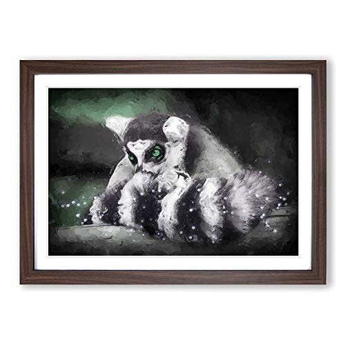 Big Box Art Ring-Tailed Lemur in Abstract Framed Wall Art Picture Print Ready to Hang, Walnut A2 (62 x 45 cm)