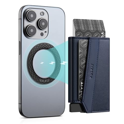 VULKIT Magnetic Pop-Up Wallet for Max.8 Cards, Phone Card Holder Wallet Compatible with iPhone 12 Serie or Higher, Includes Magnetic Ring, Packed in Gift Box, Ideal for Men's Gift, Blue