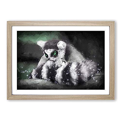 Big Box Art Ring-Tailed Lemur in Abstract Framed Wall Art Picture Print Ready to Hang, Oak A2 (62 x 45 cm)