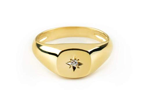 Elegant jewel box DUTY-FREE Unisex Diamond compass ring in solid Gold 9k,14k,18k, Diamond chevalier ring, Solid gold signet ring, Square face diamond ring, Anniversary gift, RN362